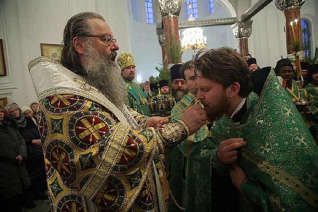 В этот день за богослужением митрополит Кирилл возвел иеромонаха Леонида (Солдатова), клирика Каменской епархии, в сан архимандрита.