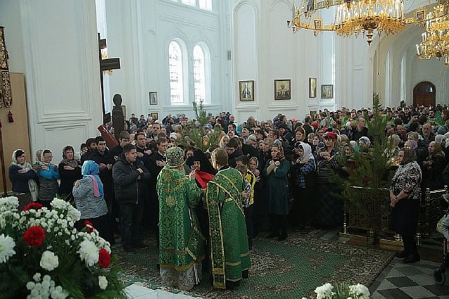 Его Высокопреосвященству сослужили: архиепископ Бакинский и Азербайджанский Александр, епископ Каменский и Камышловский Мефодий, епископ Нижнетагильский и Невьянский Евгений, епископ Серовский и Краснотурьинский Алексий, а также архимандрит Леонид (Солдатов), избранный во епископа Алапаевского и Ирбитского, наместник Свято-Николаевского Верхотурского мужского монастыря игумен Иероним (Миронов), наместник мужского монастыря Царственных страстотерпцев игумен Леонтий (Козлов), и многочисленное духовенство Екатеринбургской митрополии.